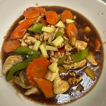 Bell peppers, carrots, ginger, mushrooms and onions, stir-fried in a ginger brown sauce.